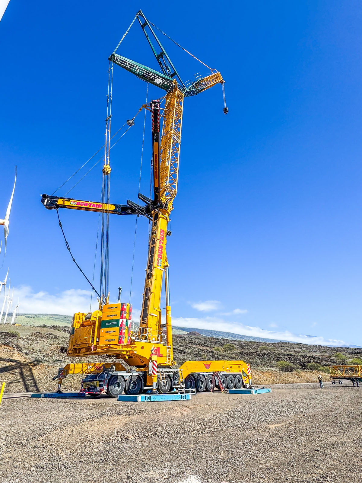 Our crews have supported wind work across the Hawaiian Islands time and time again — and every trip starts with a logistics puzzle most people never see. Cranes have to be disassembled, staged, and loaded at mainland ports. Ocean freight has to be coordinated down to the day so equipment lands when your project needs it, not weeks before or after. Permits, escorts, and island transport routes have to be mapped out long before the first wheel turns. Then, once the iron hits the ground, our team reassembles everything on site and goes straight to work.