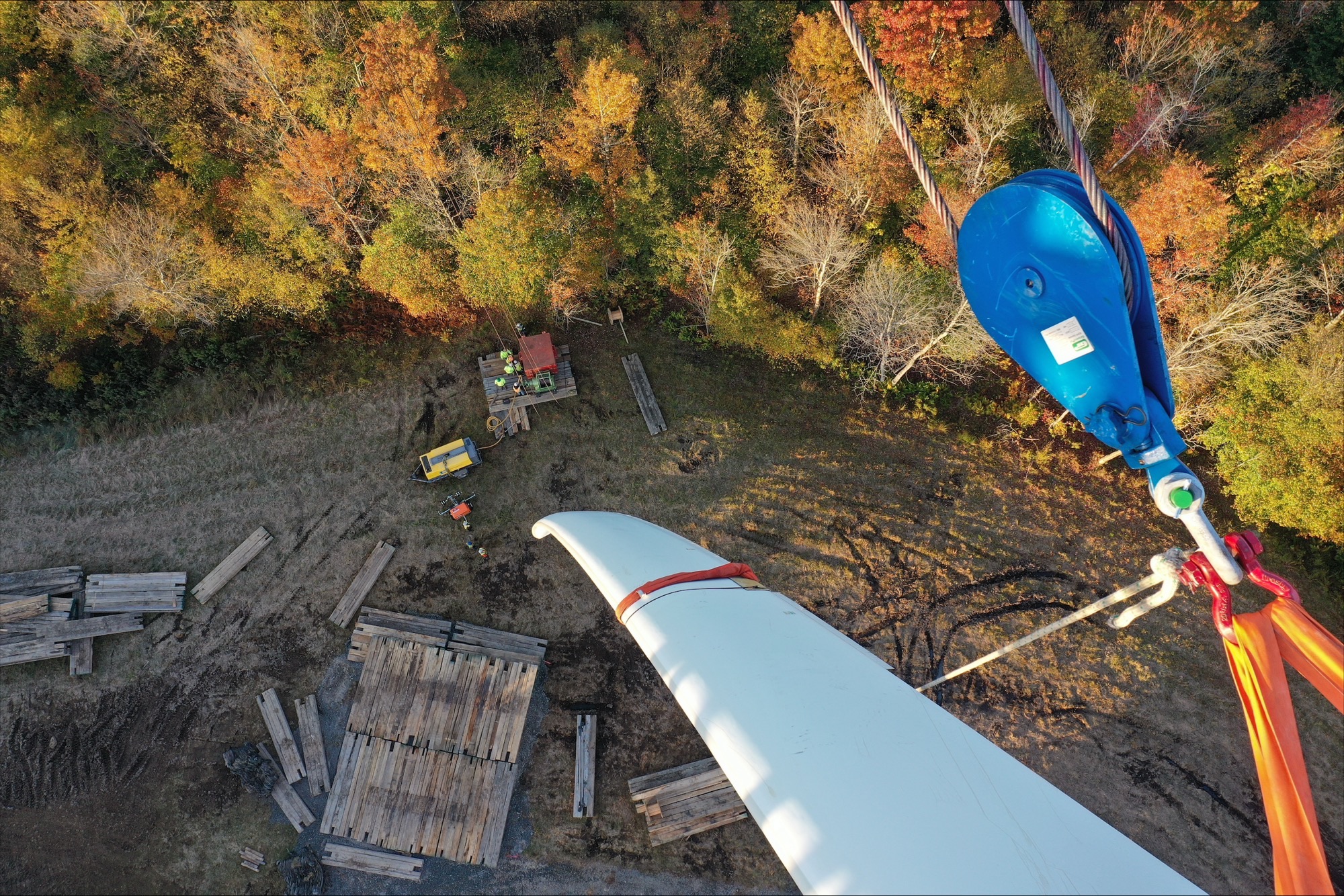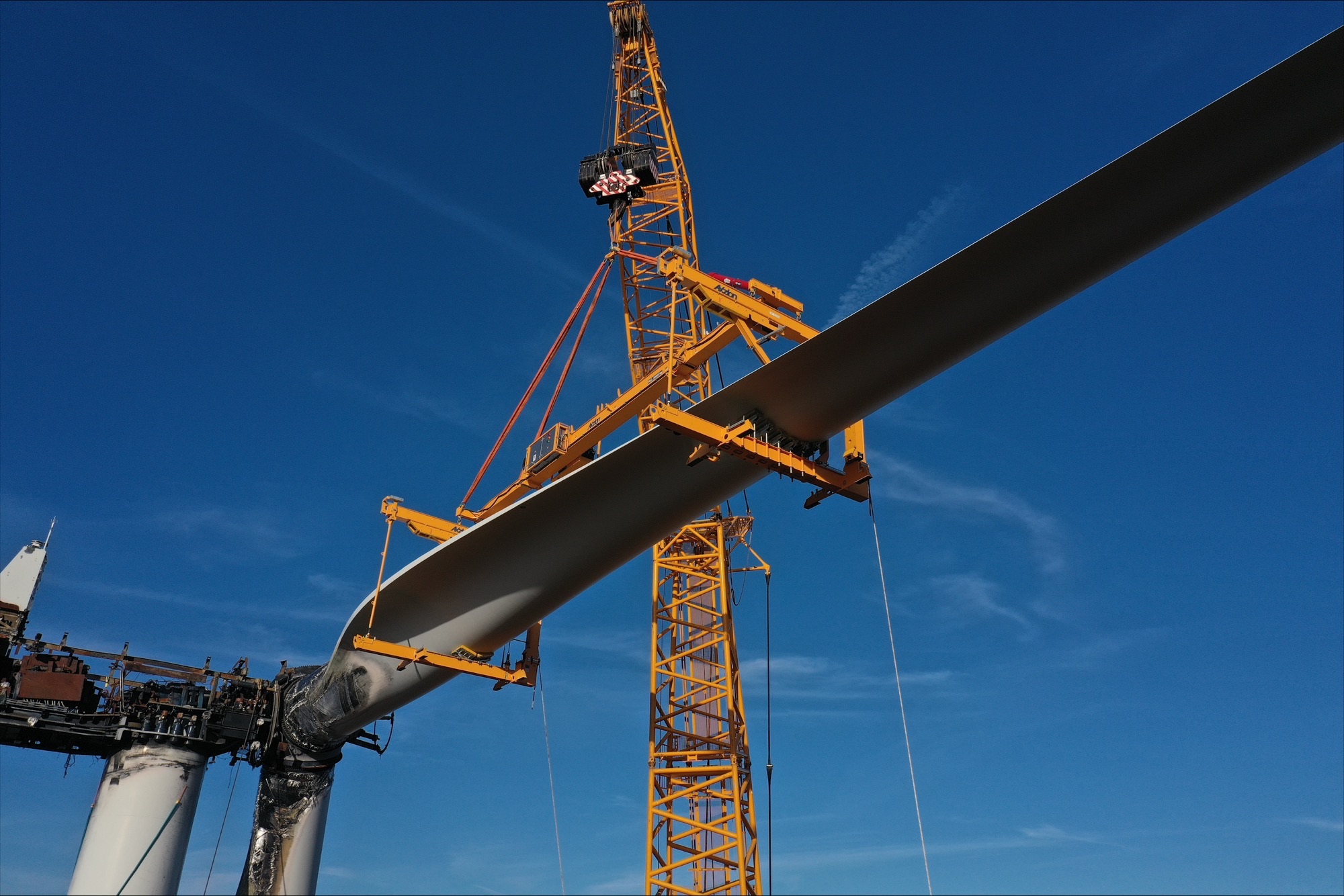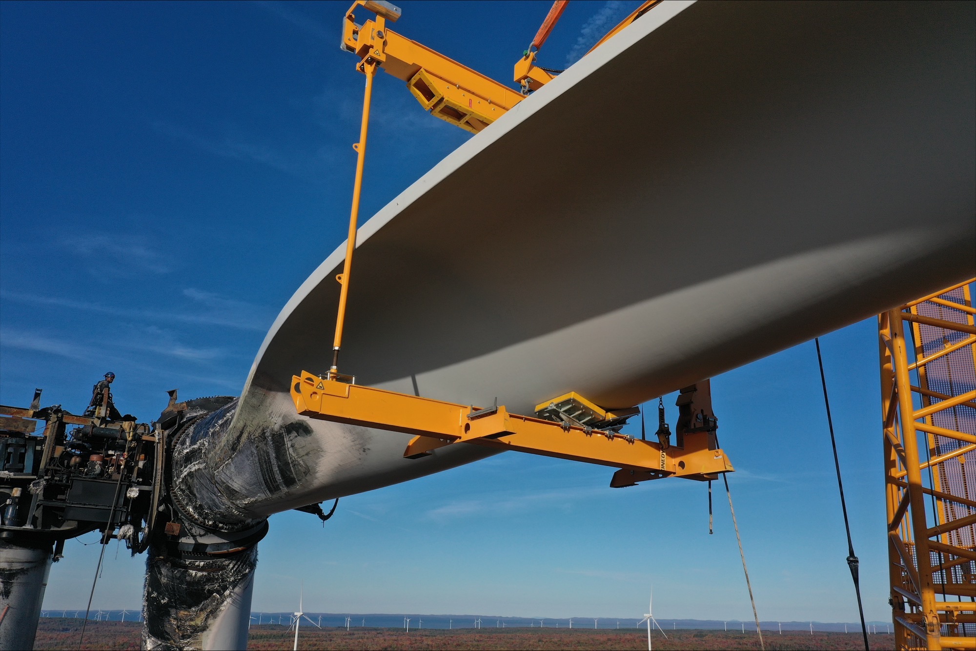 Mountain successfully completed the removal of a 232 foot (71 meter) long wind turbine blade using our custom Single Blade Installation (SBI) tool — a global first for this type of turbine. The project took place on a wind turbine platform at a height of 352 feet (107.5 meters), making it one of the most technically challenging removals Mountain has completed to date.